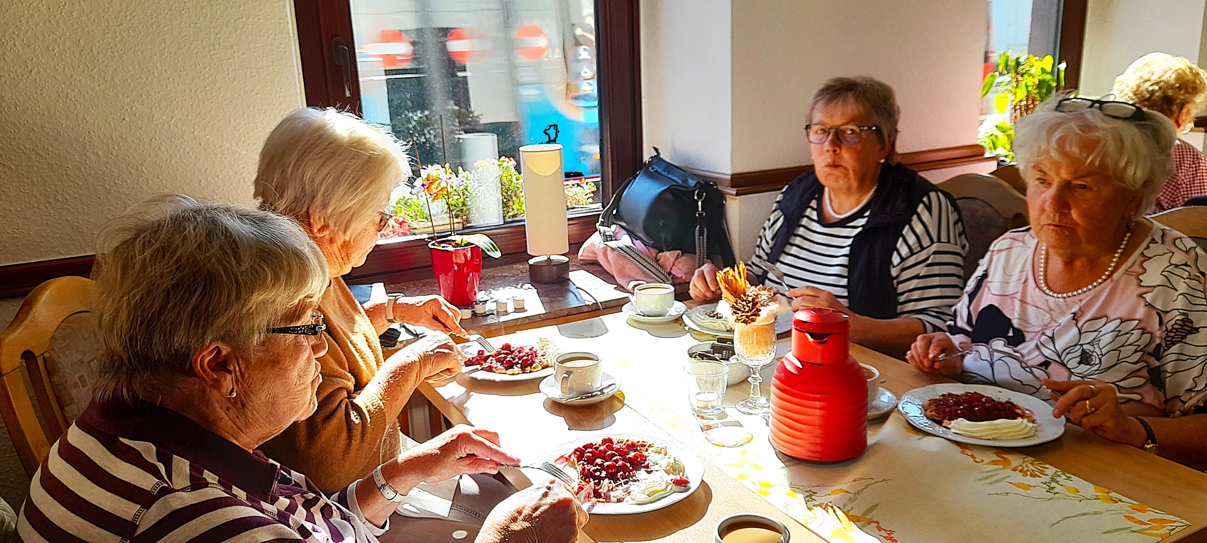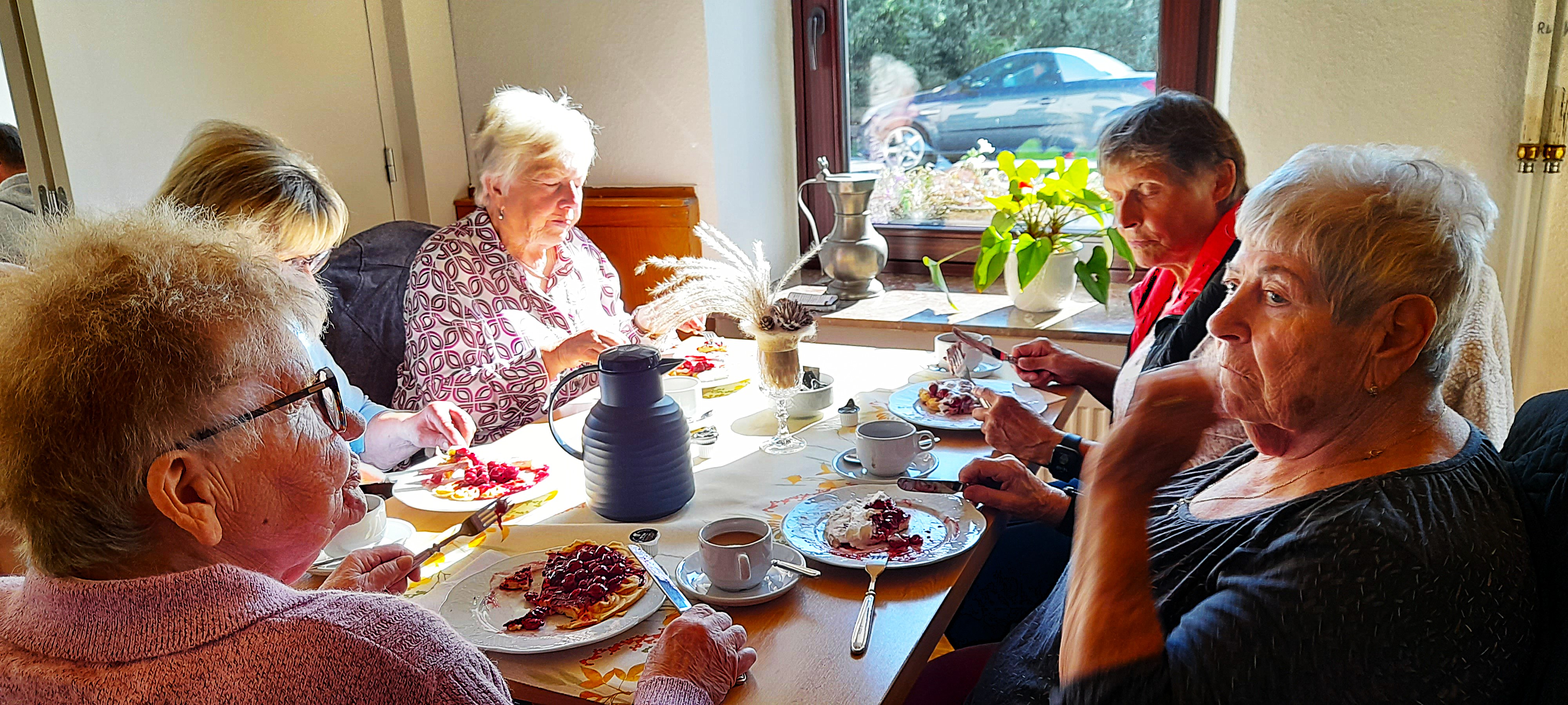 Gleich zu Beginn der Veranstaltung entwickelten sich an den Tischen lebhafte Gespräche und die von Peter Schürmann in seinem Landgasthaus servierten Waffeln mit heißen Kirschen und Sahne rundeten das Bild kulinarisch ab.