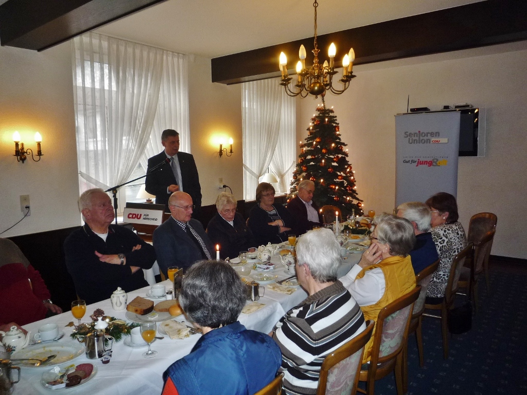 Wenn sich, wie am 5. Dezember, punktgenau um 8.30 Uhr 80 Senioren zum „Politischen Frühstück“ im Hotel „Zum Adler“ einfinden, dann erwartet sie nicht nur ein reichhaltiges Frühstück mit anschließendem geselligen Beisammensein, sondern auch ein Gastredner, der alle rhetorischen Register zieht und durch seine glaubhafte, verständliche Argumentation überzeugt