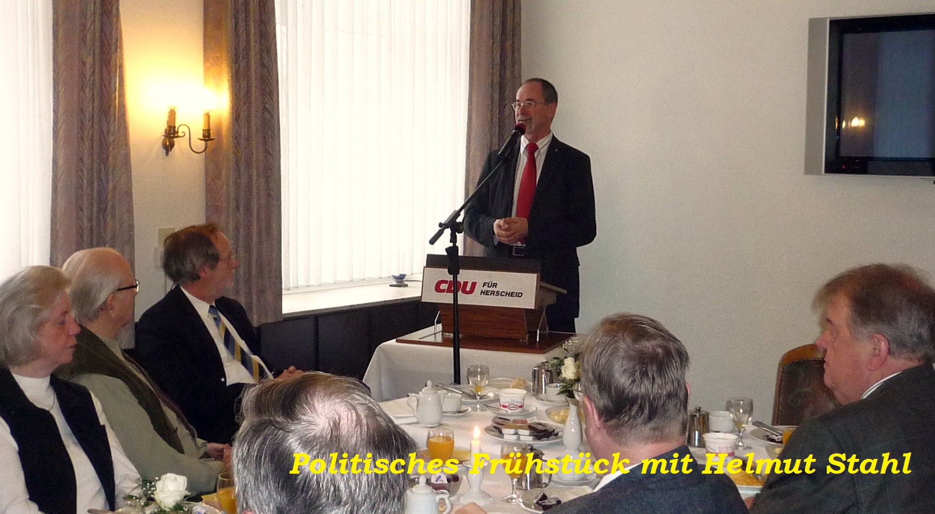 Aufgeteilt in den Blöcken „politisches Frühstück“, „Jahresversammlungen“, „Theateraufführungen der Bühnenmäuse“ und „Tagesfahrten“, bot die Fotoschau ein inhaltsreiches Dokument des facettenreichen Programms der Senioren Union. Insbesondere die Vorträge namhafter Persönlichkeiten beim „politischen Frühstück“ waren Pluspunkte: Helmut Stahl, seinerzeitiger CDU-Fraktionsvorsitzender im Landtag NRW, Prof. Dr. Otto Wulff, Bundesvorsitzender der Senioren Union, Matthias Heider, heimischer CDU-Bundestagsabgeordneter, Lutz Lienenkämper, stellv. CDU-Fraktionsvorsitzender im Landtag NRW, Bodo Löttgen, Generalsekretär der CDU NRW, Bürgermeister Uwe Schmalenbach sowie MdL-Bernhard Tenhumberg und Barbara Sauerland von der Gemeinde Herscheid.