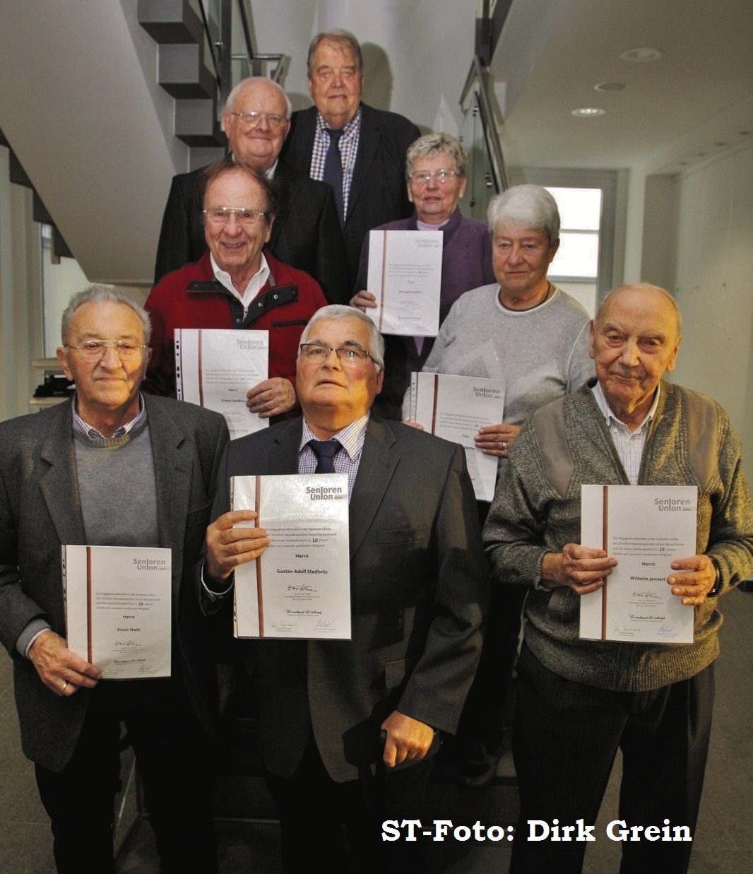 Es war wenig verwunderlich, dass die gestrigen Wahlen allesamt einstimmig und ohne eine einzige Gegenstimme verliefen. Wolfgang Weyland wurde als Vorsitzender wiedergewählt. Seine Stellvertreterin ist ab sofort Annerose Kober, die damit Peter Prinz ablöst, der nach 14 Jahren im Vorstand der heimischen Senioren Union auf eigenen Wunsch aus seinem Amt ausschied. Zu Beisitzern wurden bestimmt: August Feldhaus, Brigitte Cordt, Albrecht Herrmann, Annegret Seifert und Eckhard Volkmann.