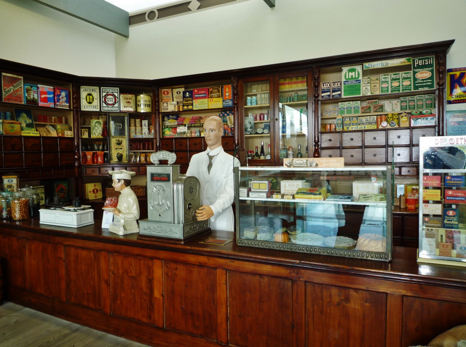 Begeisterung kommt auf, als die Ausflügler im dritten Obergeschoss auf die Schätze des Firmenarchivs treffen. Ein Kolonialwarenladen aus der Jahrhundertwende mit historischem Inventar und Originalverpackungen weckt Erinnerungen an vergangene Zeiten. Ebenso eine mittels besonderer Technik an die Wand gebrachte Straßenszene, die vier Ladenfronten aus den Jahren 1910 bis 1965 zeigt. Abgerundet wird das Bild durch Auslagen wertvoller Exponate wie Koch- und Backbücher, Backgeräte und Werbemittel aus dieser Epoche.