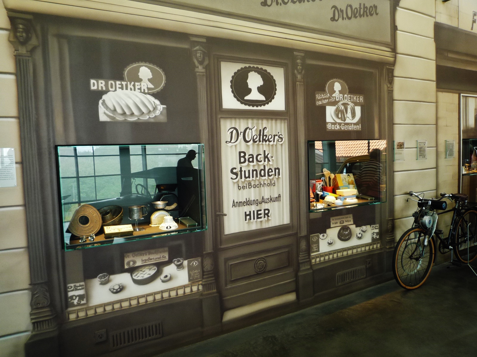 Weitere Anziehungspunkte sind drei Oldtimer, die einst für das Dr. Oetker Fabrikat im Außendienst zum Einsatz kamen. Das offene Filmtheater am Ende des Raumes zeigt vier historische Werbefilme aus den 1920er, 1930er und 1950er Jahren.