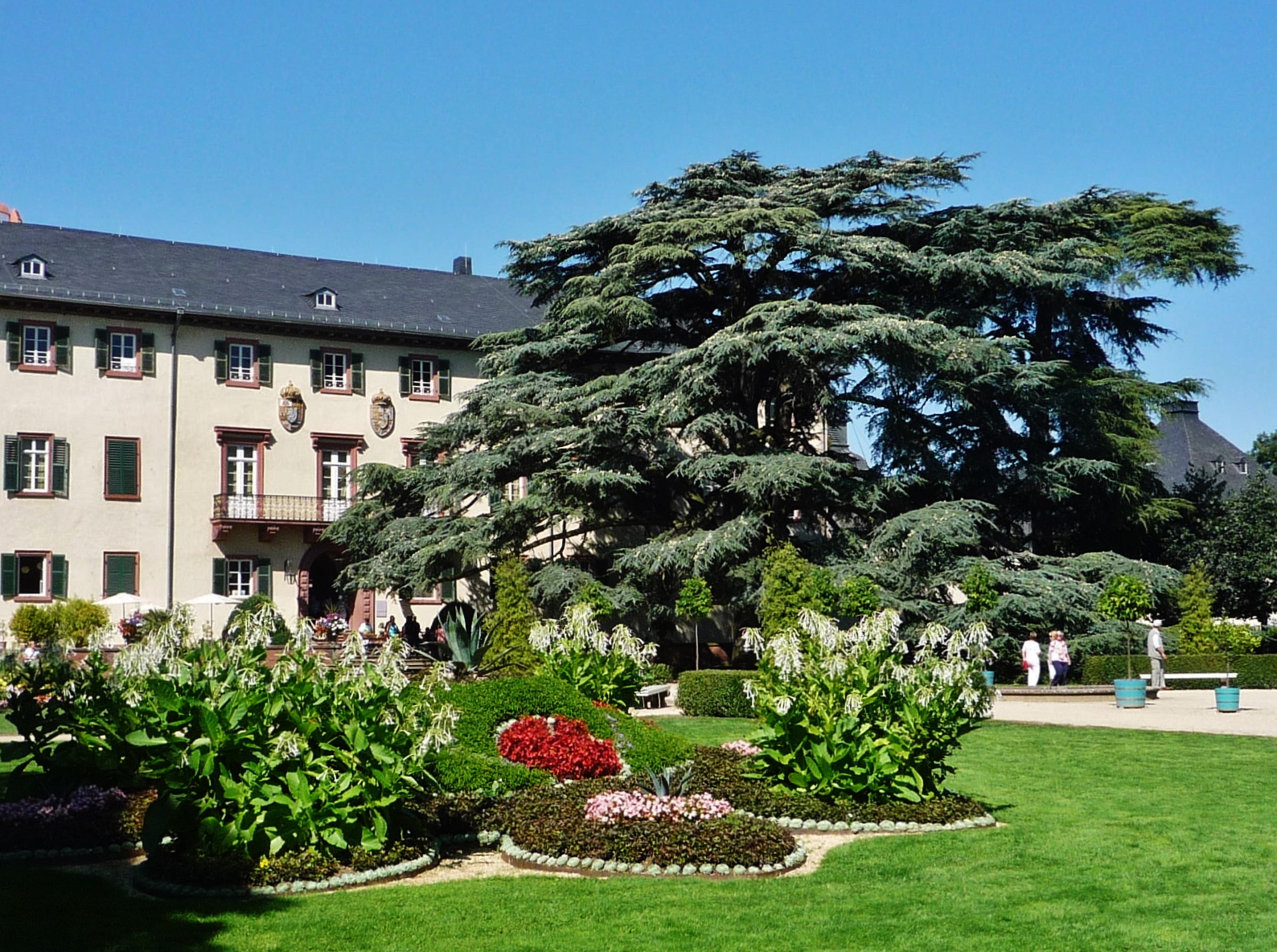 Der Schlosspark mit dem angelegten Barockgarten und der Orangerie sind eine Augenweide und laden zu einer intensiven Betrachtung ein. Unter einer schattenspendenden Libanonzeder, die mit ihrem mächtigen Stammwerk und der weitverzweigten Baumkrone das Gelände großzügig in Anspruch nimmt, genießen die Herscheider bei kühlen Getränken in geselliger Runde das sommerliche Ambiente. Hier erfahren sie, dass der Baum 1820 gepflanzt wurde und seit dem Generationen „unter seine Fittiche genommen hat“.